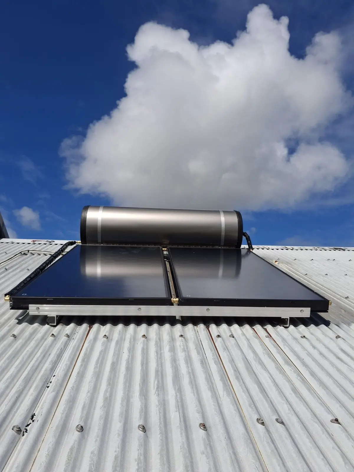 Grâce à la circulation naturelle du fluide par effet thermosiphon, il fonctionne sans pompe ni électricité, ce qui en fait un système à la fois fiable, economique, et parfaitement adéquat au climat ensoleillé de l’île